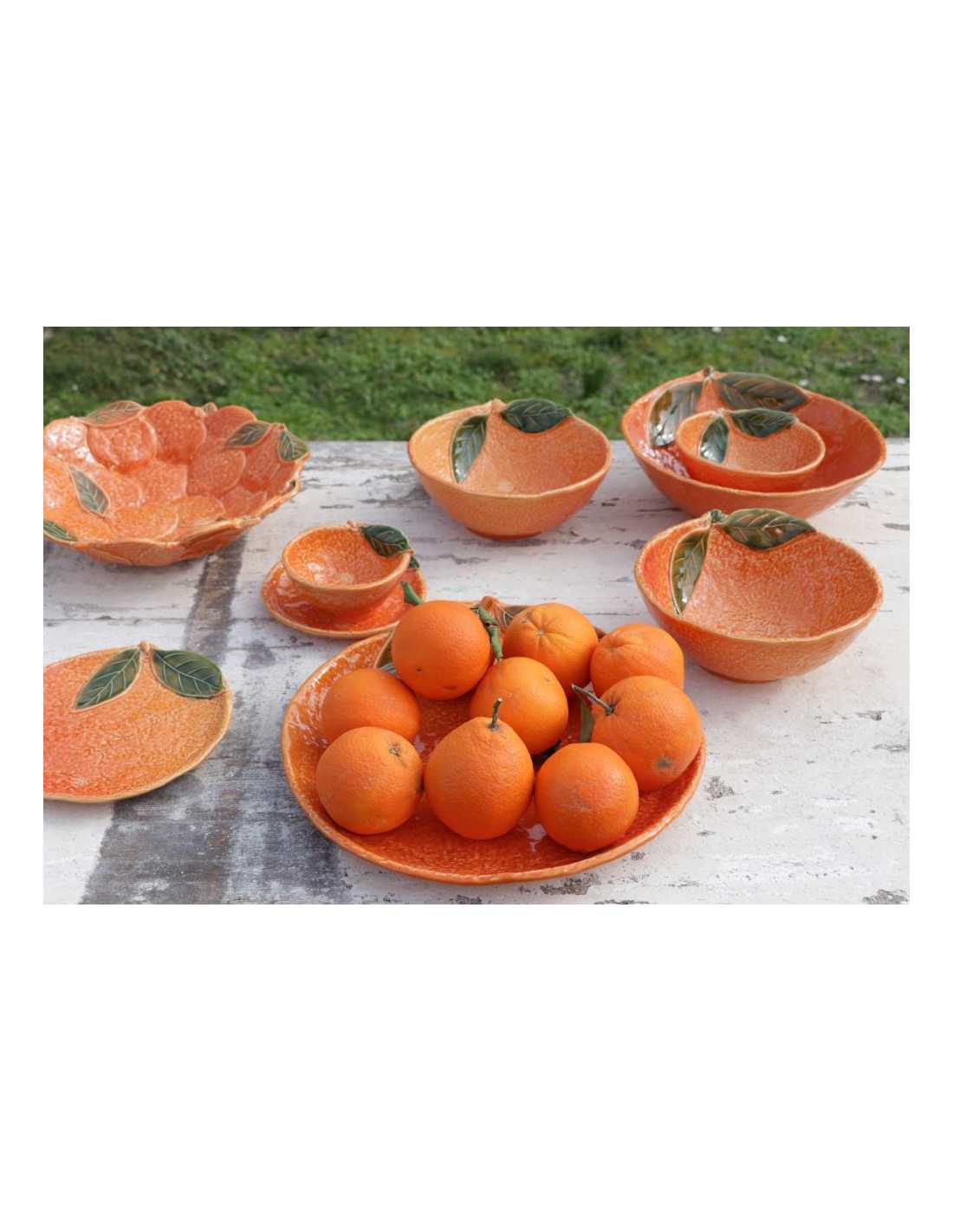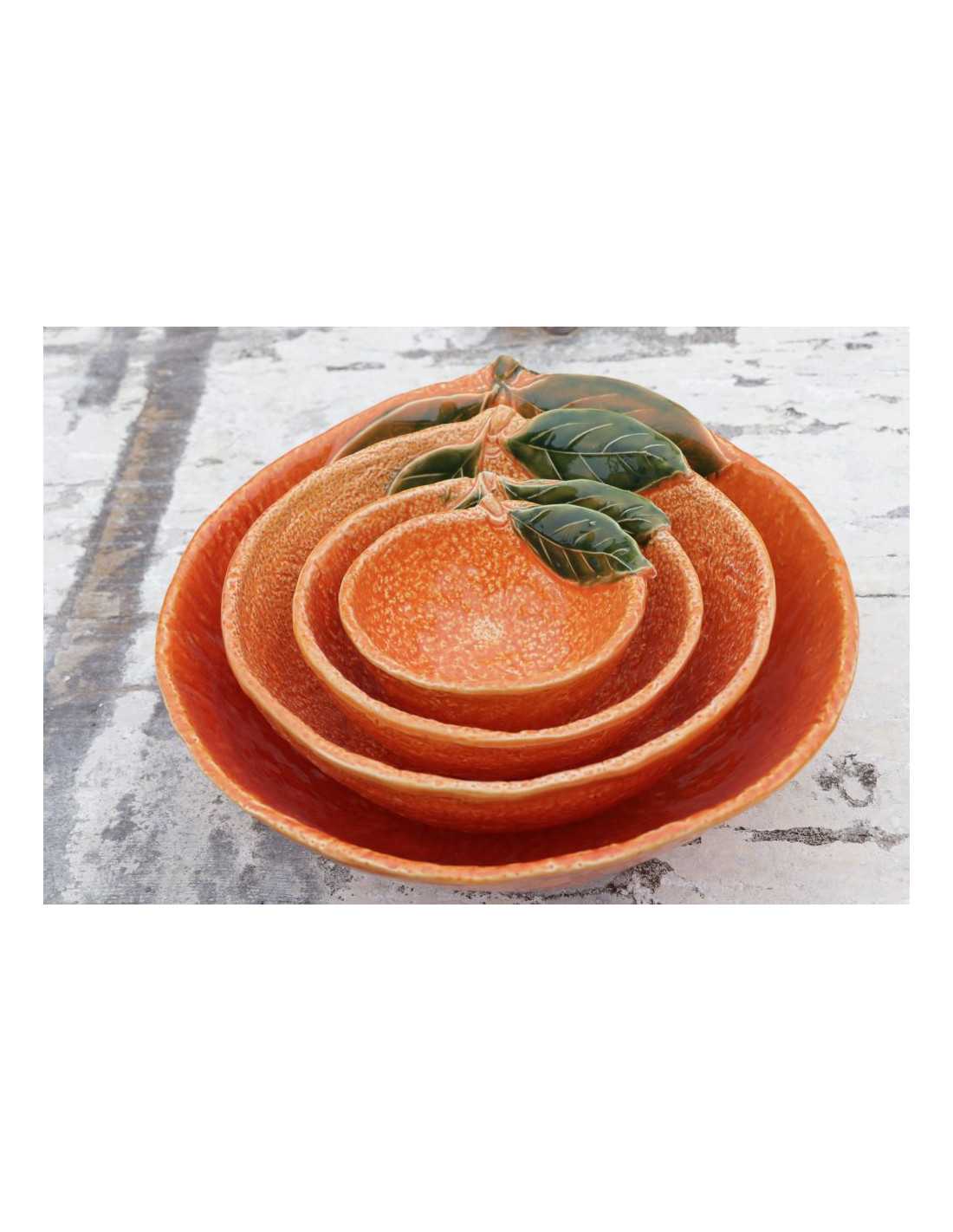 MITTELGROSSE SALATSCHÜSSEL IN ORANGENFORM MIT GEPRÄGTEN BLÄTTERN