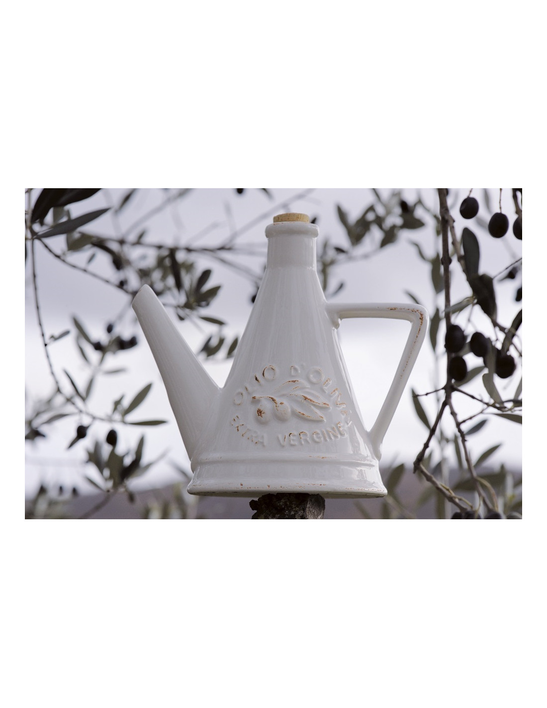 ÖLFLASHE KONISCH MIT GRIFF UND SCHRIFTZUG RELIEF