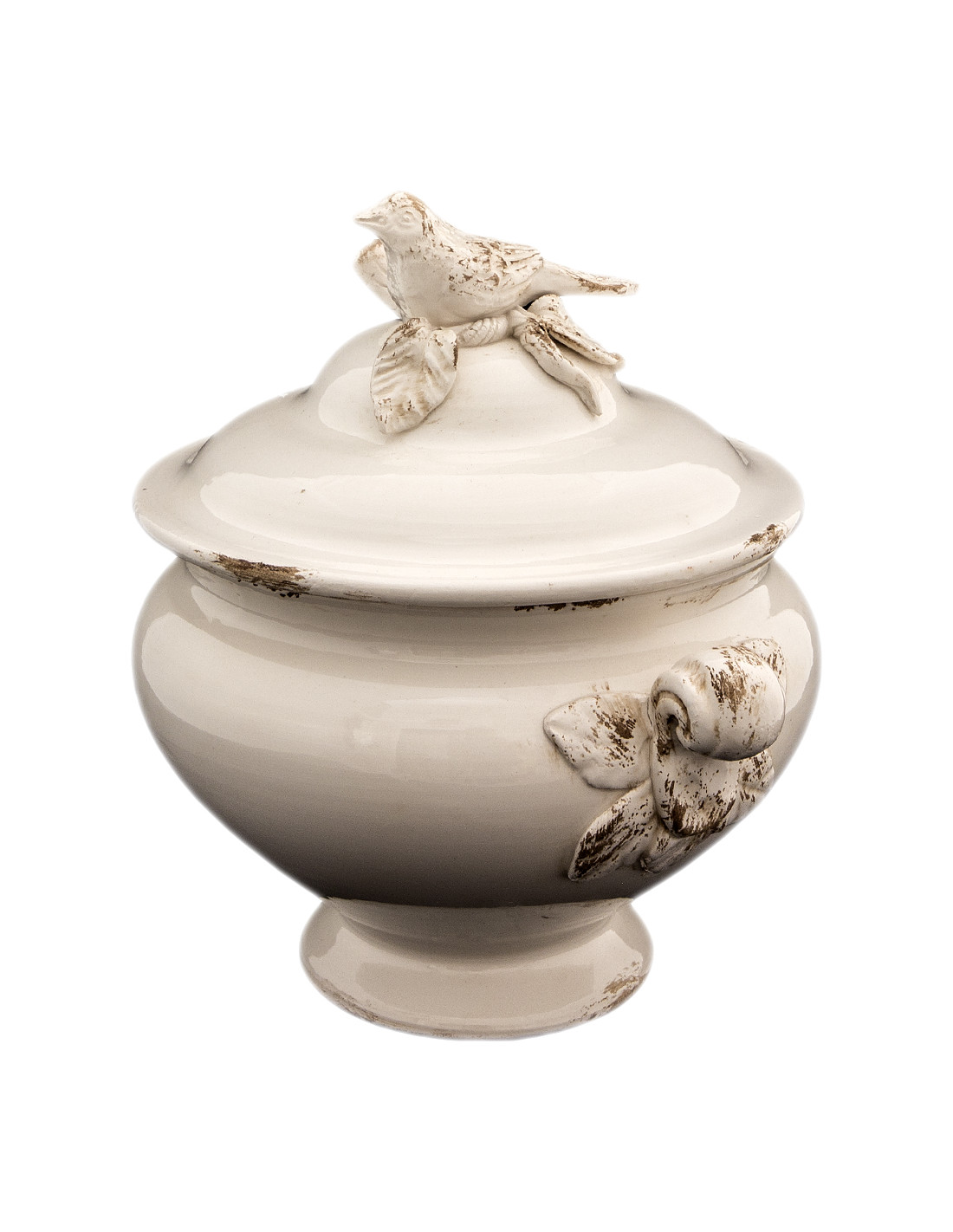 DECKELTERRINE KLEIN MIT VOGEL RELIEF