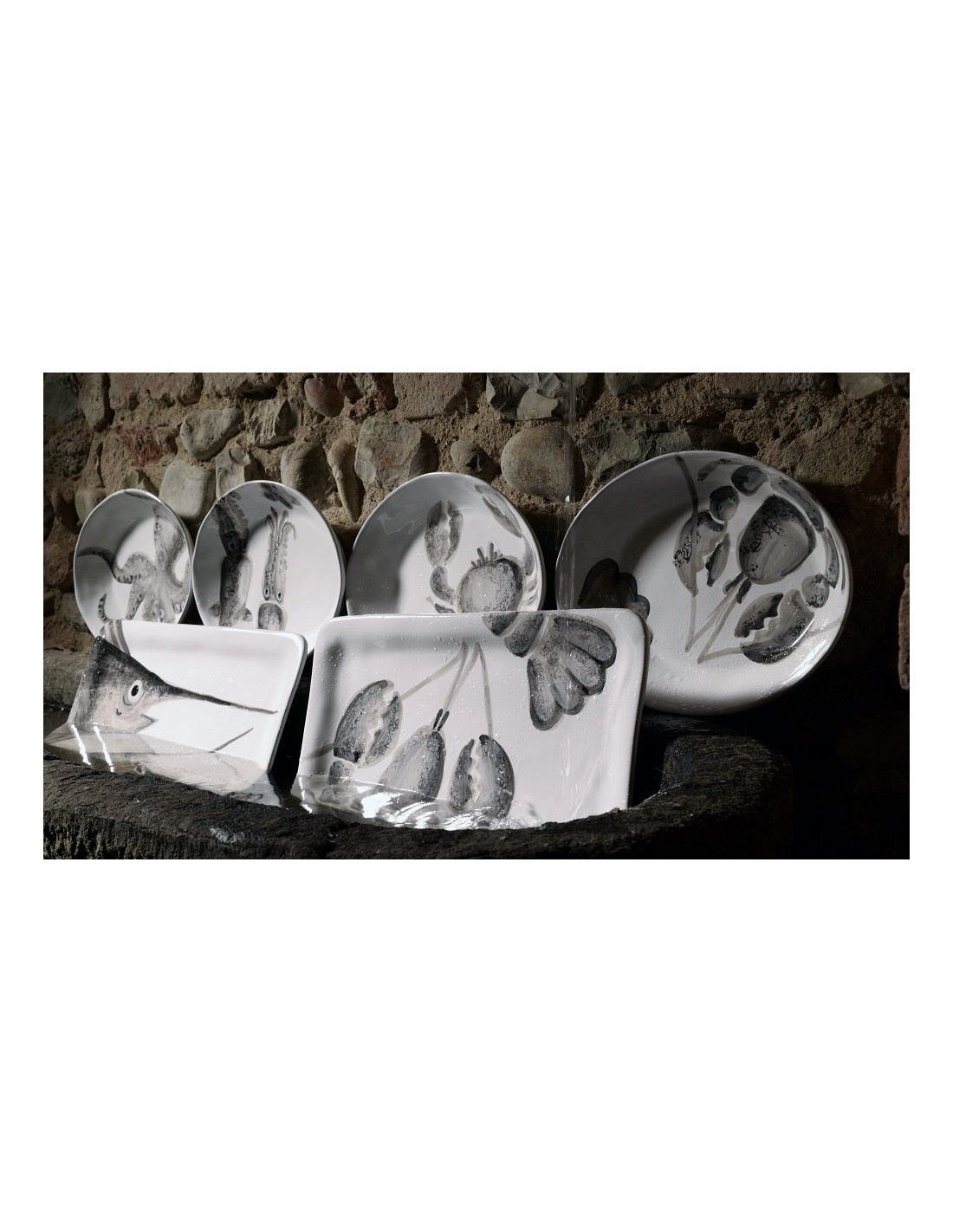 "MARINA" COLLECTION WITH HANDPAINTED SQUID DECOR, CREATED TO BRING ON THE TABLE THE FLAVORS AND COLORS OF OUR SEA