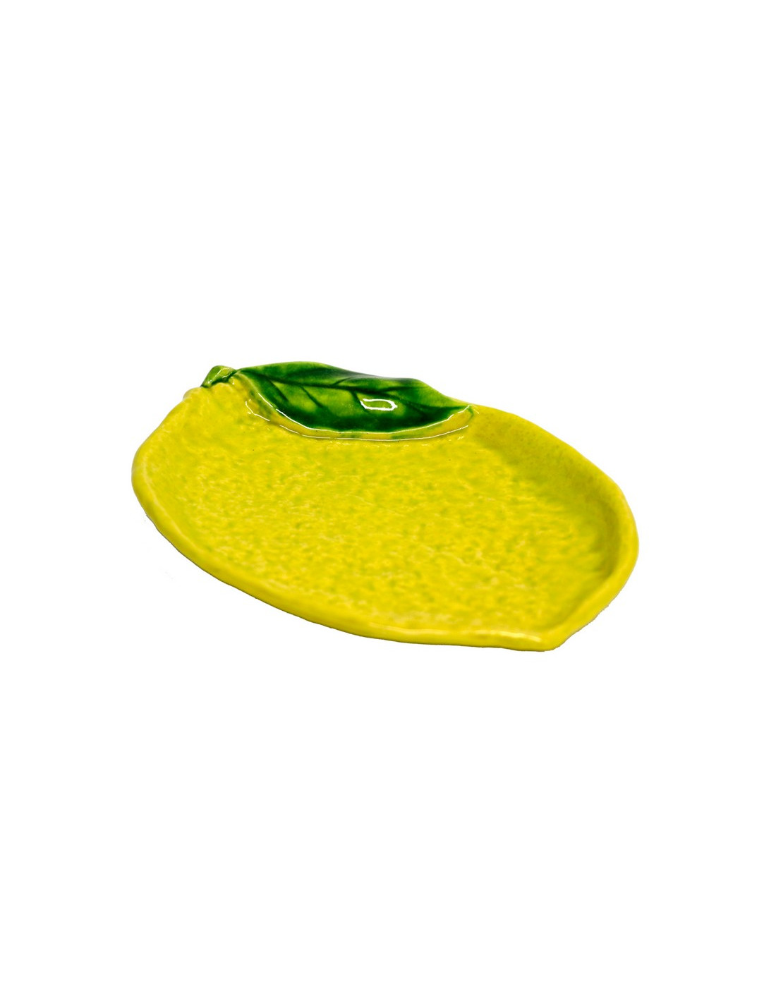 ASSIETTE À DESSERT EN FORME DE CITRON OUVERTE AVEC FEUILLE EN RELIEF
