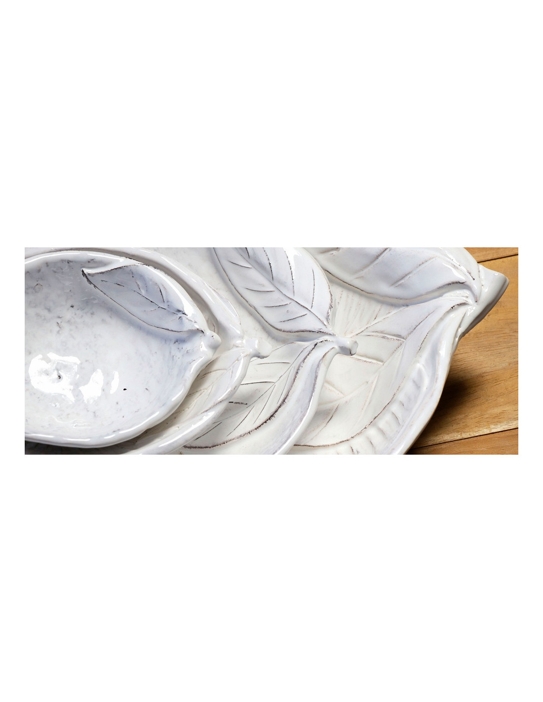 GRAND SALADIER EN FORME DE CITRON OUVERT AVEC FEUILLES EN RELIEF