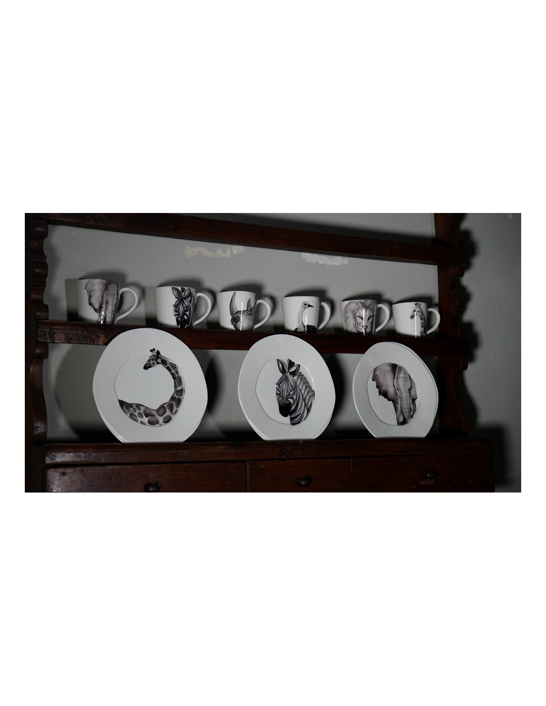 Piatti e bicchieri decorati a mano con leoni, Giraffe, e gli elefanti.
