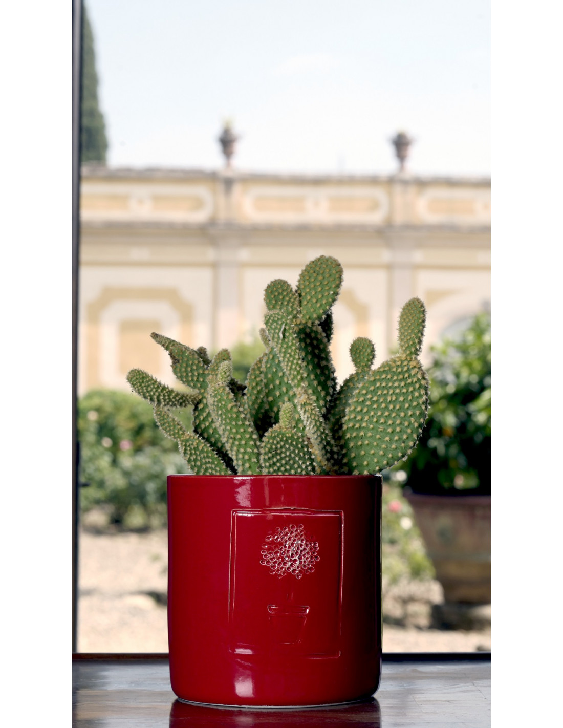 La linea dei vasi e portavasi con incisione stilizzata di un vaso di fiori,